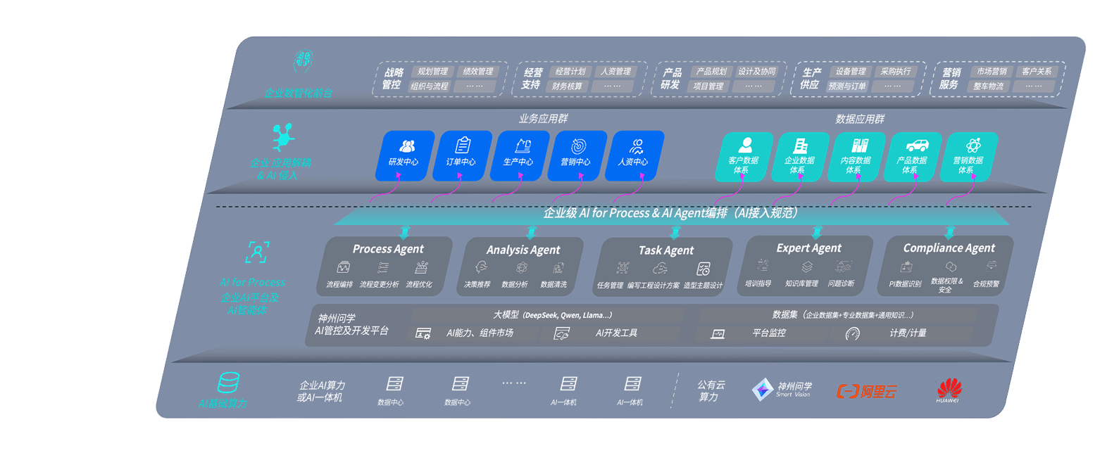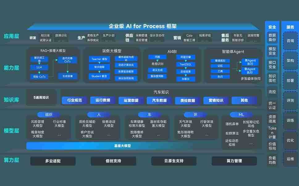 端到端的一站式AI工作空间深度融合了从企业战略规划到日常经营的全流程业务板块,,,定向解决车企内部领域多、、部门多、、、链条长、、场景碎片化等难题,,,,支持车企快速构建以AI为核心的生产力写作体系,,实现任务执行与AI能力的无缝集成与交互