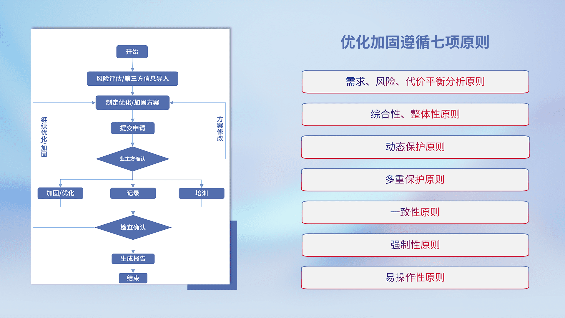 最大程度利用现有资产,,,,对评估发现的问题进行封堵与整改,,,防止漏洞被利用,,,,提升整体网络安全性,,,,为客户带来高标准的优化加固服务。。