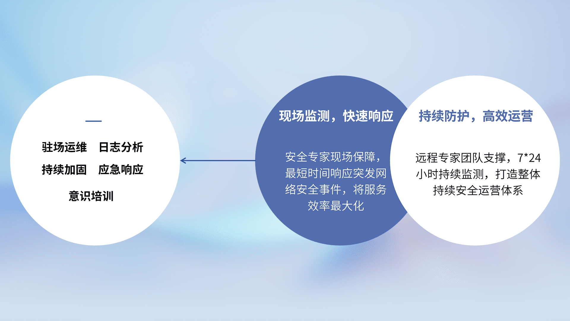 针对客户行业特性,,,,提供专属的一站式安全管理服务,,帮助客户全面感知网络空间威胁,,通过安全专家的线上、、、线下防护支持,,,实现风险闭环,,将安全保障常态化,,为客户打造常态化安全运维运营服务。。。